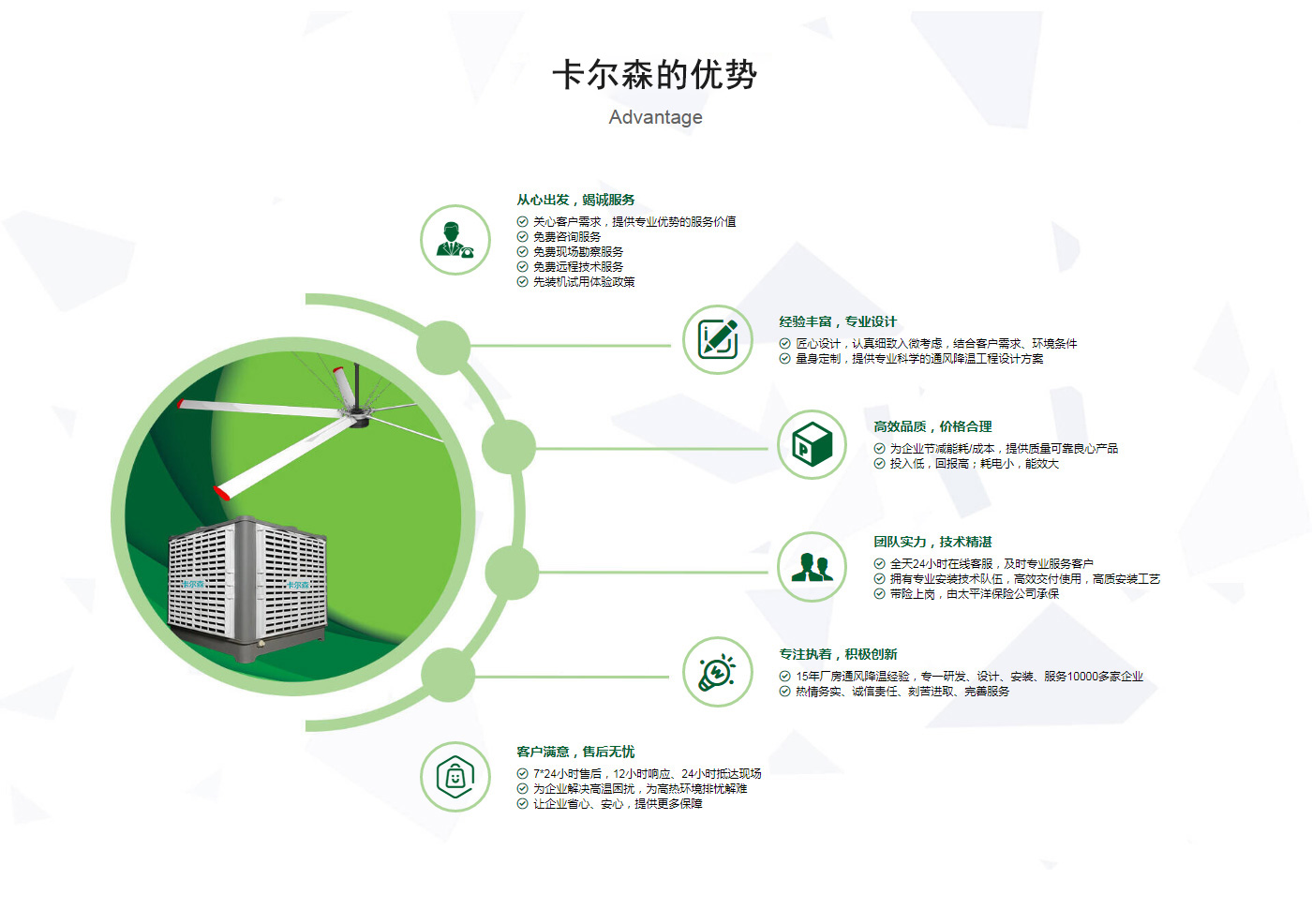 ??晉江市卡爾森機電設備有限公司是一家集設計、制作、銷售、安裝工業通風設備、中央空調、節能環??照{、脈沖除塵設備、環境凈化工程、等環保工程企業。并提供環境影響評價、環保工程總承包、環保工程設計、環保工程運營、環保工程成套設備等一站式服務。公司一直誠心服務于工業廠房的通風設施,我們的產品:“品種齊全、質量優越”。根據客戶的需求精心設計,高質量的制造,力求使每個產品都達到合理耐用、節能環保。科學的設計和精美高品質的產品,完善的服務系統,加強售前、售中、售后服務,對顧客在使用商品中出現的各種問題及時解決,使顧客無后顧之憂。產品廣泛適用于各類型制造業、機械類、五金冶煉、食品、化工、電子、紡織、噴涂、娛樂以及服務等場所。我們秉承“質理過關、價格合理、交期準時、服務周到”而受到新老客戶的好評和信賴。我們堅持“客戶至上、質量上乘”為宗旨,努力工作,為您換來潔凈美好的明天??柹敢赃^硬的質量,良好的信譽同各界朋友一起開創更加輝煌的未來。
